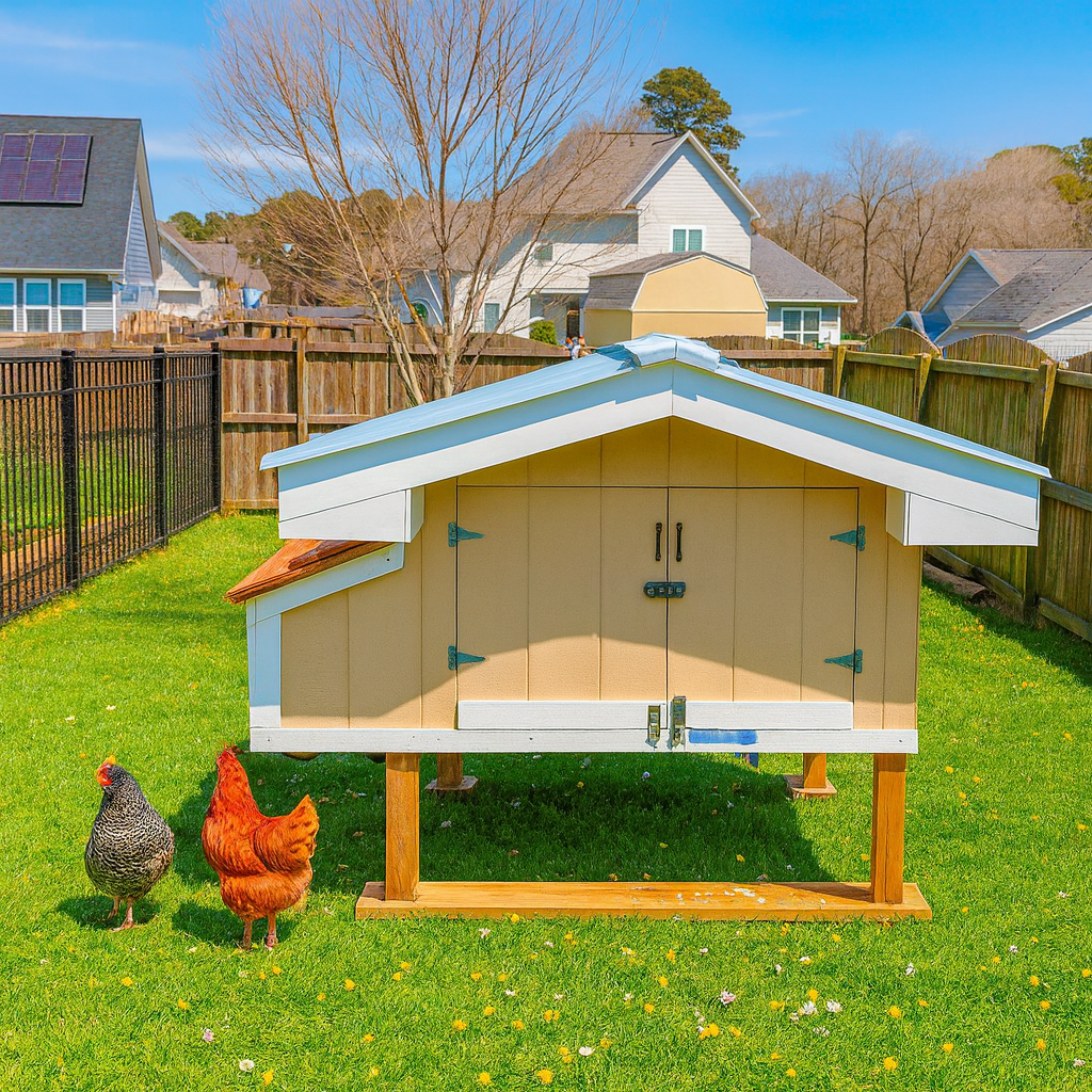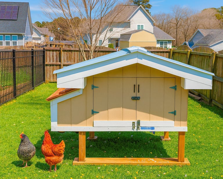 Nestled in our backyard, our chicken run is a cozy, thoughtfully designed space built entirely by hand to reflect both function and charm. We designed and constructed the coop ourselves, tailoring every detail to meet the needs of our small flock while blending beautifully into the landscape. Elevated for ventilation and easy access, the coop features secure doors, a gabled roof, and a sunny outdoor run where our hens can forage, dust bathe, and enjoy the day. Surrounded by fencing for safety and framed by seasonal blooms and greenery, this area is more than just a shelter — it's a peaceful retreat where happy chickens thrive and where sustainable living begins.